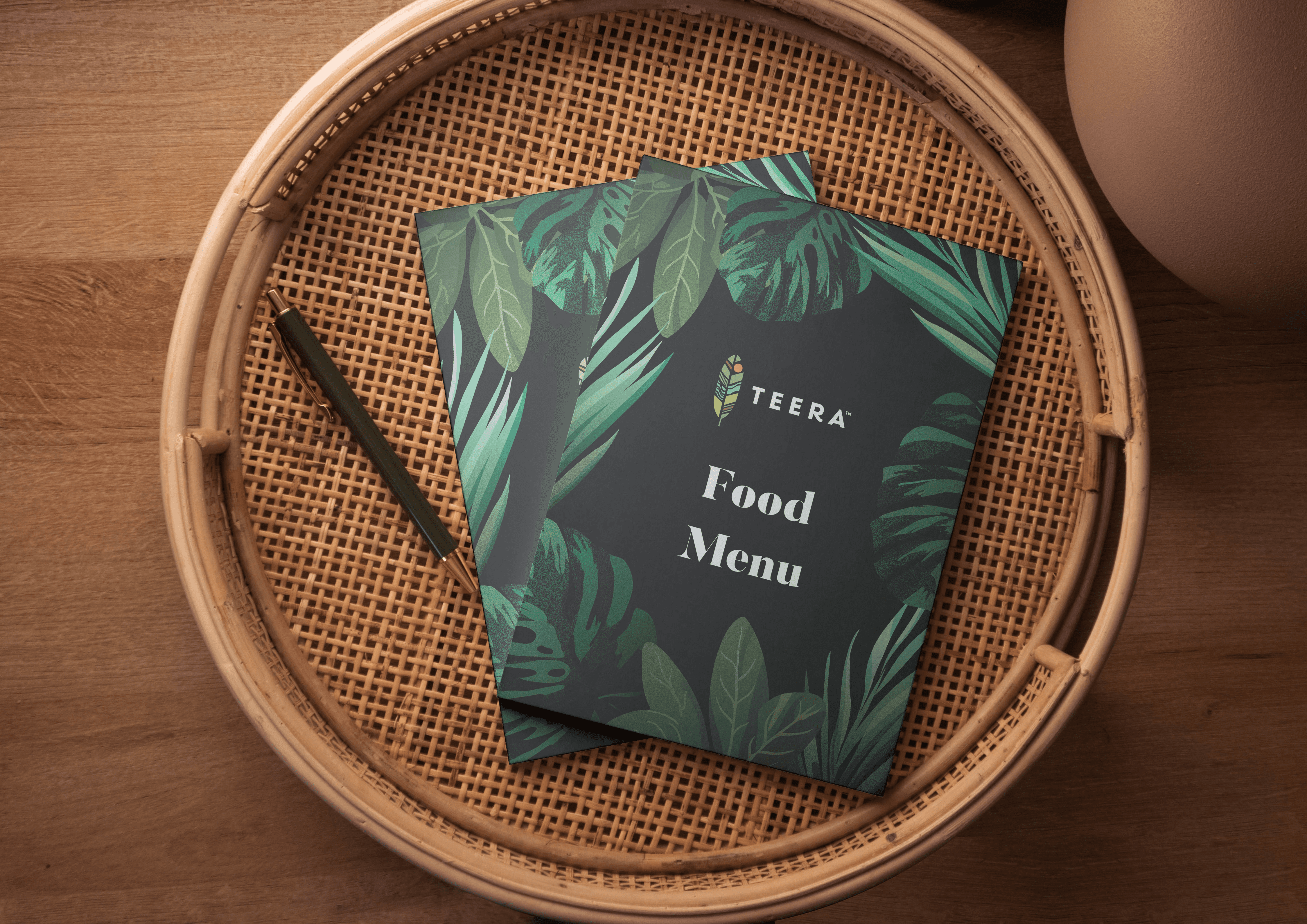 Teera, a new restaurant in Pune, sought a menu design that would reflect their tropical theme and commitment to a clean, minimalist aesthetic. The client envisioned a menu that would transport diners to a tropical paradise, with a focus on vibrant colors and natural elements. A green color scheme was specified to evoke the lushness and freshness of tropical landscapes.